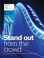 Download Graze FThe new ColorGraze MX4 Powercore family extends the range and flexibility of the popular line of high-performance, full-color LED grazing fixtures from Philips Color Kinetics. These intelligent, RGBW or RGBA fixtures offer an expanded palette of intensely saturated full-color light output in a variety of beam angles. Low-profile housing, connectorized cabling, a universal power input range, and direct line-voltage operation make ColorGraze MX4 Powercore fixtures easy to install and operate. Custom lengths, LED channels, beam angles, housing colors, and power consumption levels produce hundreds of possible configurations and light distribution patterns to support virtually any façade or surface illumination applicationmily.